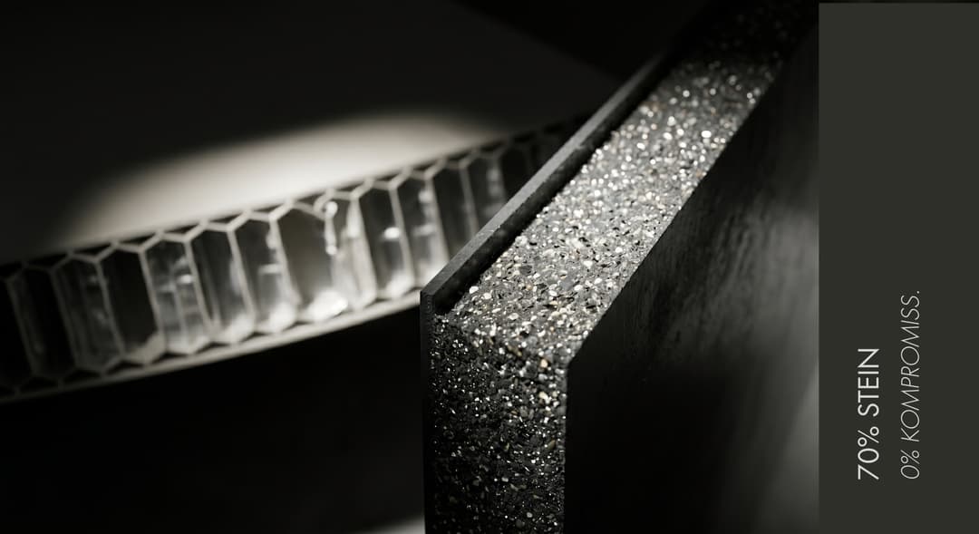SPC-Paneele bestehen zu rund 60-70% aus gemahlenem Kalkstein, der mit einem thermoplastischen Polymer verbunden wird. Das Ergebnis ist ein mineralischer Verbundwerkstoff, der härter als PVC, formstabiler als MDF und zu 100% wasserfest ist.