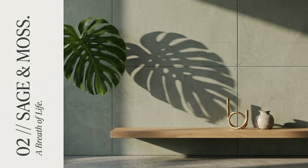 Grüntöne kommen 2026 stark zurück — aber nicht in Dunkelgrün-Mystik, sondern in leisem Salbei und warmem Moos. Kombiniert mit Leinen, hellem Holz und gedämpften Messing-Details.