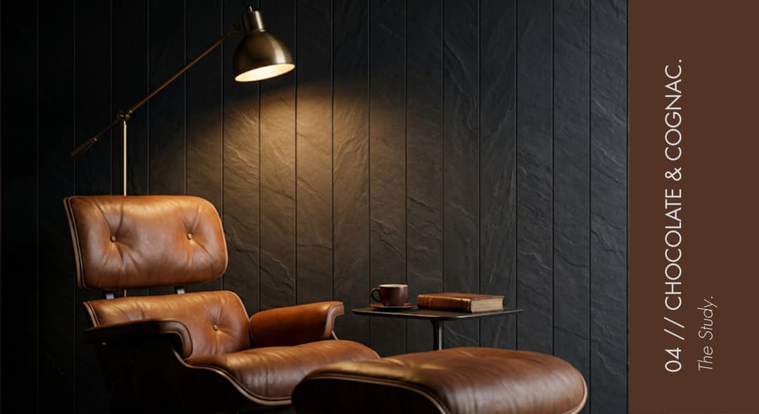 Passendes Paneel: Dunkle Holz-Imitate oder Schiefer. Unsere Matte-Kollektion in dunklen Tönen trifft den Nerv.